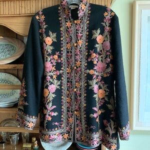 Baba Clothing lightweight wool, embroidered, silk lined jacket.