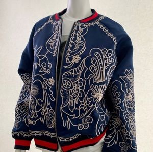 Aofuli/ Stylewe embroided Navy Bomber ,trim in Red, Will fit a,2x (Runs small).