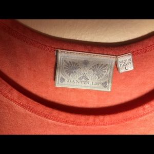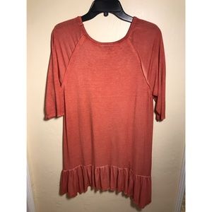 Never worn! Soft fabric! Looks cute with jeans or leggings. Size Large. The girl modeling the shirt in the second picture is an XS and is wearing the shirt as a long tunic over leggings. 92% Rayon, 8% Spandex