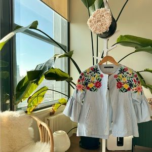 Cute and chic floral embroidered jacket with zipper closure by J.Crew