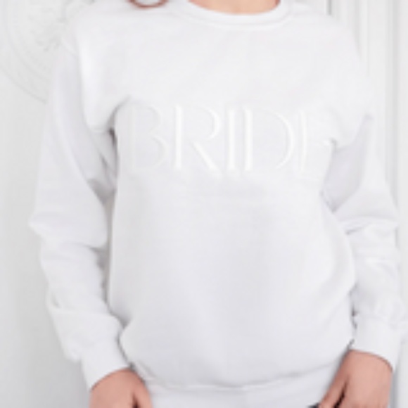 Original website description: Bridal yet minimal, this embroidered Bride sweatshirt is for the sophisticated bride-to-be. Made from a soft and comfortable 100% cotton blend, this sweatshirt features a beautiful "BRIDE" embroidery design in our signature font.