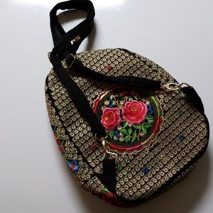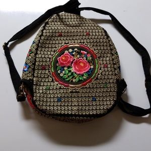 Beautiful embroidered backpack. Has two zippered main pockets and a small zipper pocket inside.