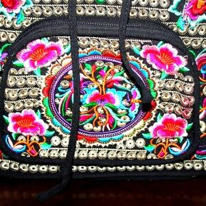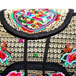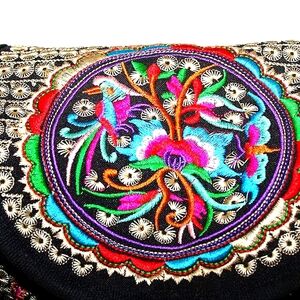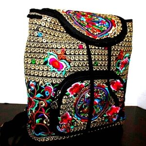 Carry your essentials in vibrant, artistic style with this unbranded embroidered backpack! Featuring intricate multicolor floral and geometric embroidery on a black base, this unique bag is perfect for bohemian aesthetics, festival adventures, or adding a touch of global-inspired charm to your everyday look.