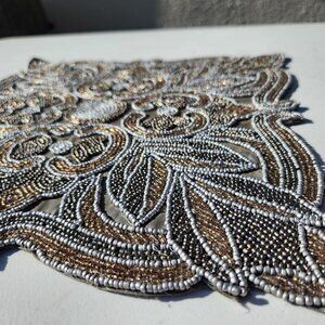 Embroidered Beaded Square Placemat Table Setting Holiday Christmas Decor Silver