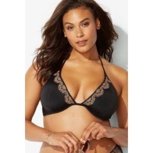 I found the matching pieces to create this beautiful bikini set. My work is your gain!! Stylish bikini with embroidered accents. The top features underwired cups with removable padding, self-tie halter straps, and G-hook closure with 3 adjustments. The bottom is cut fuller in the back for more coverage. Only 2 available!! Get one while you still can!! Any questions? Just ask! — NWT