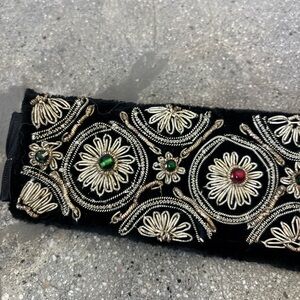 Elegant black belt with intricate embroidery, perfect for adding a touch of sophistication to any outfit.