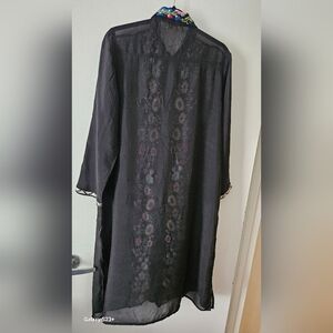 Elegant black cardigan with vibrant floral embroidery. Perfect for adding a touch of sophistication to any outfit.