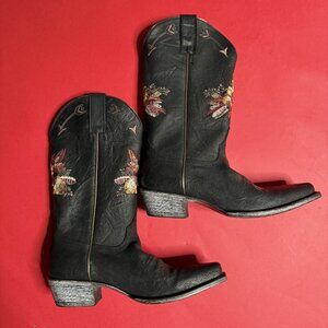 Embroidered Black Leather Cowboy Boots by Shyanne, Size 7.5 US