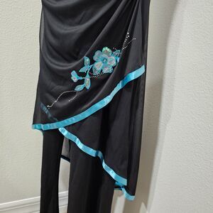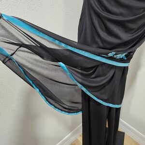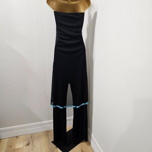 Embroidered Black Teal Trim Jumpsuit Womens Med Sheer Layered Sequins Strapless