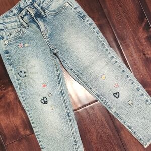Stylish Cat & Jack Girls ankle stretch blue jeans with playful embroidery. Perfect for adding a fun touch to any wardrobe.