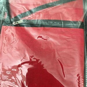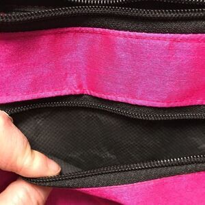 The front of the bag features two embroidered blue elephants with gold thread tusks, eyes, and hooves. Mirrors surround the elephants, decorated with blue and green embroidery. The background is red velveteen fabric.
