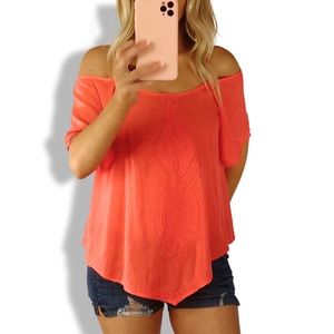 Cute too never worn! Embroidered boho off-shoulder blouse in a vibrant orange. Size Small.