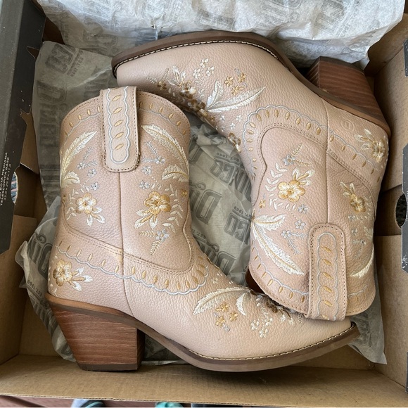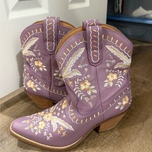 Beautifully embroidered tan western ankle boots.