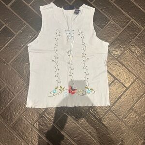 Embroidered Butterfly Lace-Up Tank β Allison Brittney β Size Large