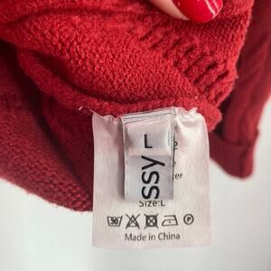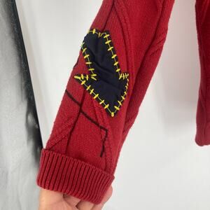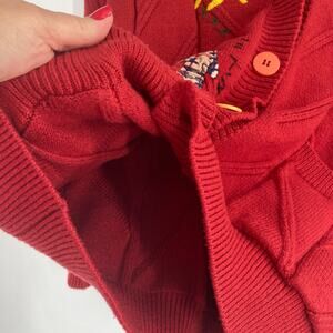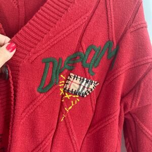 Embroidered Cable Knit Red Patchwork Chunky Cardigan 90s Sporty Grandpa Large