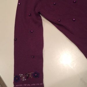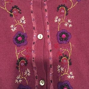 Beautiful plum colored cardigan with unique beads and embroidery.