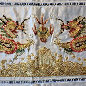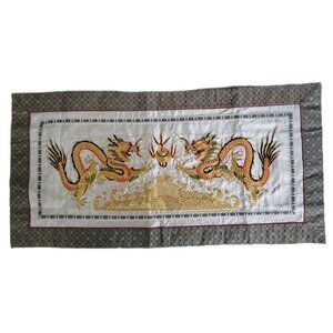 Embroidered Chinese Dragon Panel Mixed Fabric Metallic Gold Thread VTG Textile