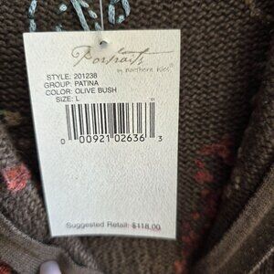 Keywords: Autumn, Fall Leaves, Woods, Cardigan, Portraits Clothing, Embroidered Sweater, Cozy Knitwear, Vintage Style, Deadstock, Ramie Blend, Leaf Pattern, Front Zip, Chocolate Knit, Knitwear L, Tags Attached, Northern Isles, New Old Stock, Unused VTG Clothing, Vintage, Original Tags, Old School, Classic, Cottagecore, Rustic, Earthy, Grandma, Effortless, Natural