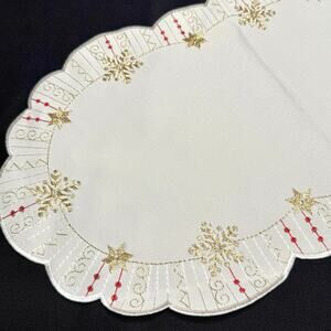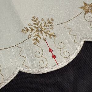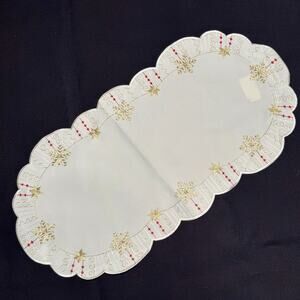 Embroidered Christmas Snowflake Table Runner 11x22 Germany Gold Thread Washable