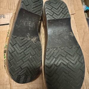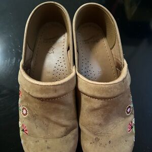 Stylish and comfortable, these tan shoes feature colorful embroidery. Perfect for everyday wear. Or if you’re going to be on your feet. Lots of life in them.