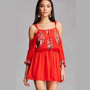 - features: crinkled fabric, ruffles, open cold shoulder, sleeves, elasticized waist and cuffs, tie keyhole