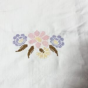 Unbranded Set of 2 Cotton Table Runners in White Color with Pastel Floral Embroidery