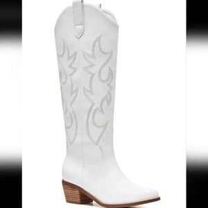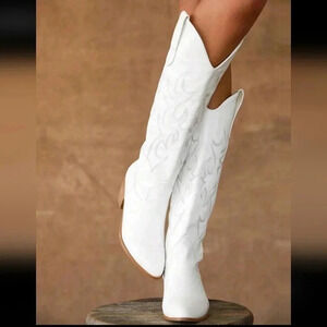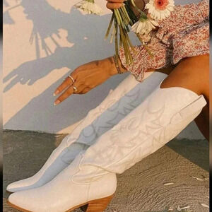 Embroidered Cowboy Boots For Women Pointed Toe Block Chunky High Heels K…