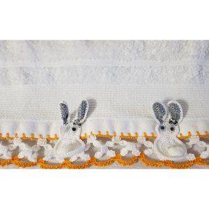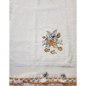 Embroidered Crochet Knit Easter Eggs and Bunny Towel decoration