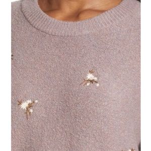 Embroidered Cross-Stitch Floral Sweater - Heather Lavender Size Small Retail$110
