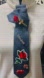 Embroidered Denim Blue Necktie Necklace with Red Rose Design and brooch