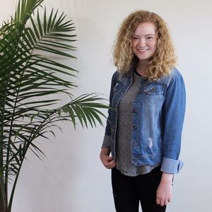 Distressed denim/jean jacket with floral embroidery details. Runs true to size, but size up for a more oversized fit. Model is 5.4 and wearing a medium. Brand new with tags from my online boutiques, photos are my own. Open to offers and 30% off bundles!