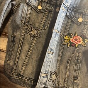 Stylish denim jacket featuring floral and star embroidery. Perfect for adding a touch of flair to any outfit. Runs small.