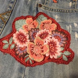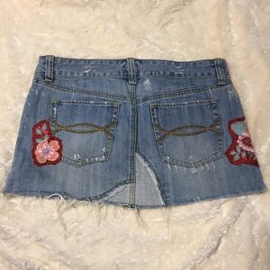 Totally on trend! Embroidered denim skirts are back and in stores like Anthro and Nasty Gal! This Abercrombie and Fitch skirt has embroidery flowers and is in perfect distressed condition. Price is flexible!