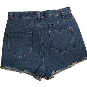 Embroidered Denim Shorts High Waisted Raw Hem Size S Cutoff