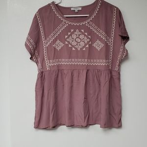 Embroidered Detail Top with Ruffle