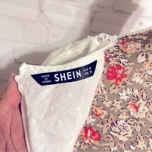 Shein White Romper. Floaty playsuit, true to size. V neckline. Short bell-sleeve. Crochet trimming throughout. Invisible back zipper. Partially lined. Removable waist tie. Light weight, textured cotton/polyester. Non stretchy material. Pet and smoke free home. B8