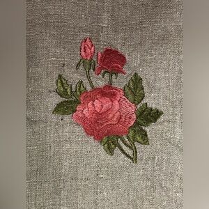 This is a beautiful doily with embroidered roses on both ends! It’s boxed in with lace. It’s 26” x 11”