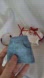 Charming doll outfit with floral embroidery. Includes a white top and denim skirt, and a hair band. Perfect for doll dress-up.
