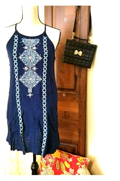 Super cute Blue color scheme dress. I wore this to a rehersal dinner in August and it did the trick! Looks super cute with a jean jacket and converse shoes too!