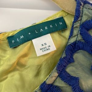 Pim and Larkin XS Yellow with sheer navy overlay with embroidery Barely worn