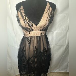Brand new mini dress Pattern resembles embroidery but the pattern is like a velvet material on the mesh part of the dress and not sewn in