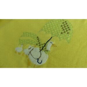 Novelty Embroidered Duck Sweater Honk If Adorable down the arm. Yellow Unique Umbrella OOAK