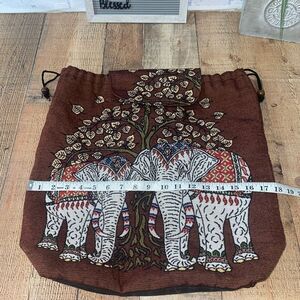 Embroidered Elephant and Tree Cotton Drawstring Backpack, "Elephant Tree"
