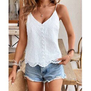 Embroidered Eyelet Frenchy Button Down Tank Top