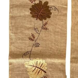 Embroidered Fall Harvest Leaves Burlap Table Runner 72" Set of 2