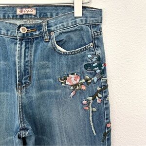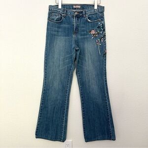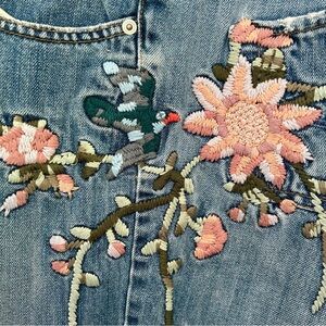 Embroidered Flare Jeans Denim Pant High Rise Floral Bird Festival Blue Size 6