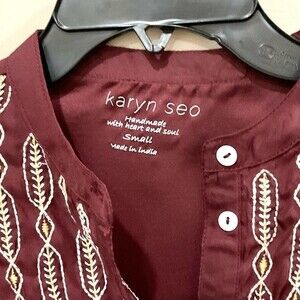 Embroidered Floral Boho Tunic Top Sz Small Karyn Seo Navi Bohemian Silky