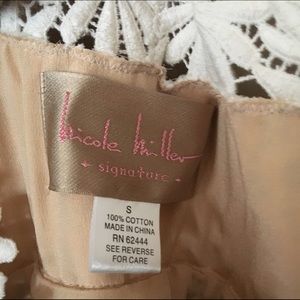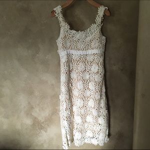 Gorgeous embroidered floral lace cocktail dress by Nicole Miller Signature. Light cream with nude backing. Worn once. Size S.