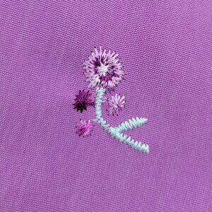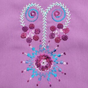 Purple brushed polyester fabric with embroidered details.