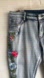 Embroidered Floral Flare Jeans Stretchy Raw Hem Boho Style 12/14